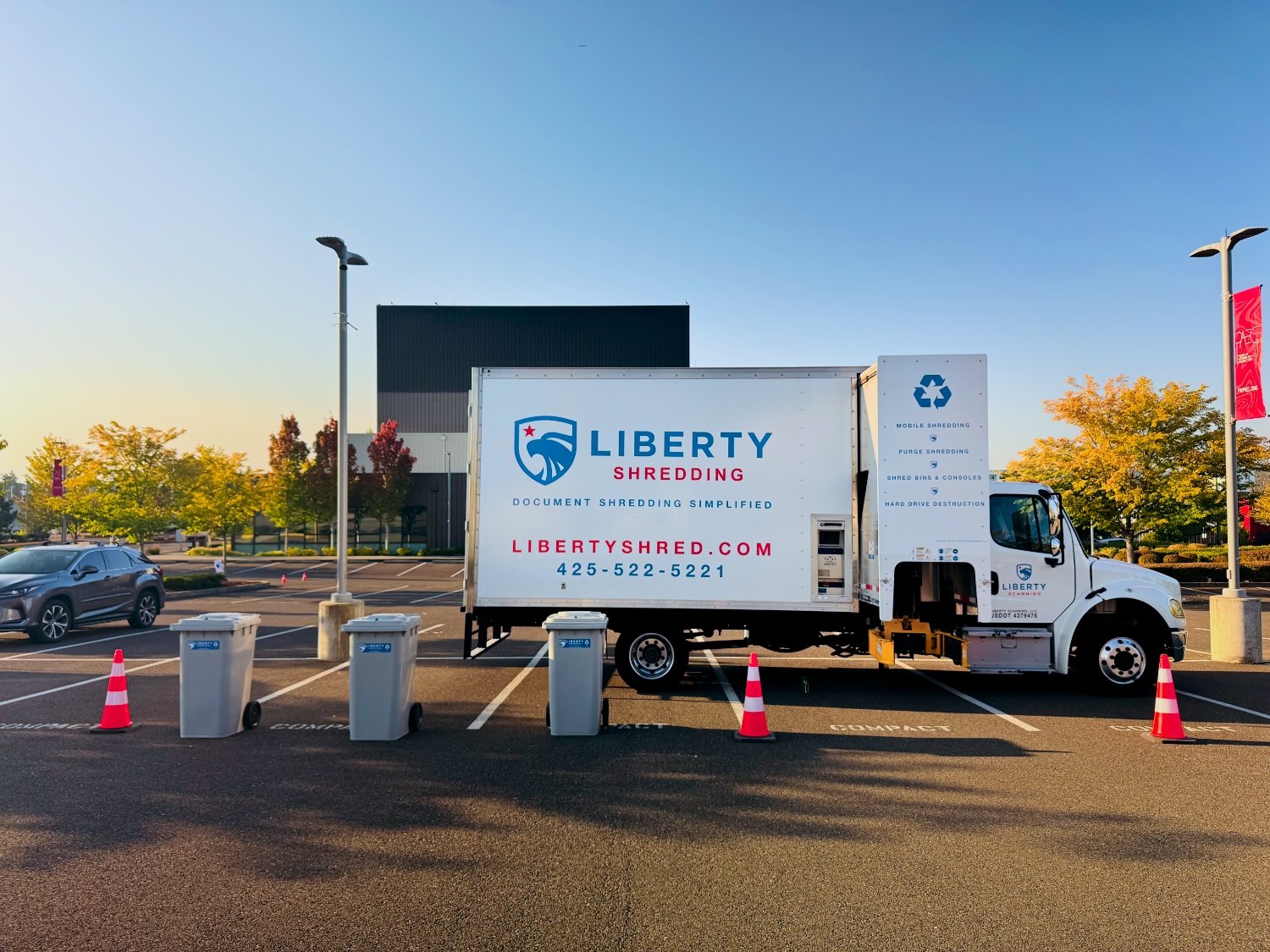 Liberty Shredding arrives at your Issaquah location with mobile shredding trucks ready for immediate, on-site destruction. We shred materials as they’re collected, keep traffic flowing smoothly, and maintain a structured, professional setup—whether the event is held at a school, church, business property, or community space.
